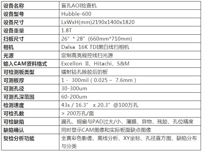5.?采用高品質(zhì)進(jìn)口線掃相機(jī),檢測效率比傳統(tǒng)的盲孔檢查機(jī)高20%。